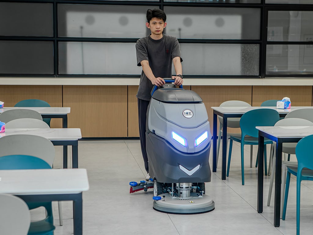 De i20YL levert tot 45 kg paddruk, waardoor zelfs hardnekkige vervuiling en ingelopen vuil moeiteloos worden verwijderd. Ondanks deze kracht blijft de machine zeer wendbaar en makkelijk te bedienen, dankzij het compacte ontwerp en de intuïtieve controles. De ingebouwde Li-ion batterij biedt tot 2,5 uur onafgebroken werktijd, laadt sneller dan traditionele accu’s en heeft een langere levensduur. Hierdoor werkt de i20YL efficiënter en met minder downtime — ideaal voor schoonmaaktaken die flexibiliteit en betrouwbaarheid vereisen.