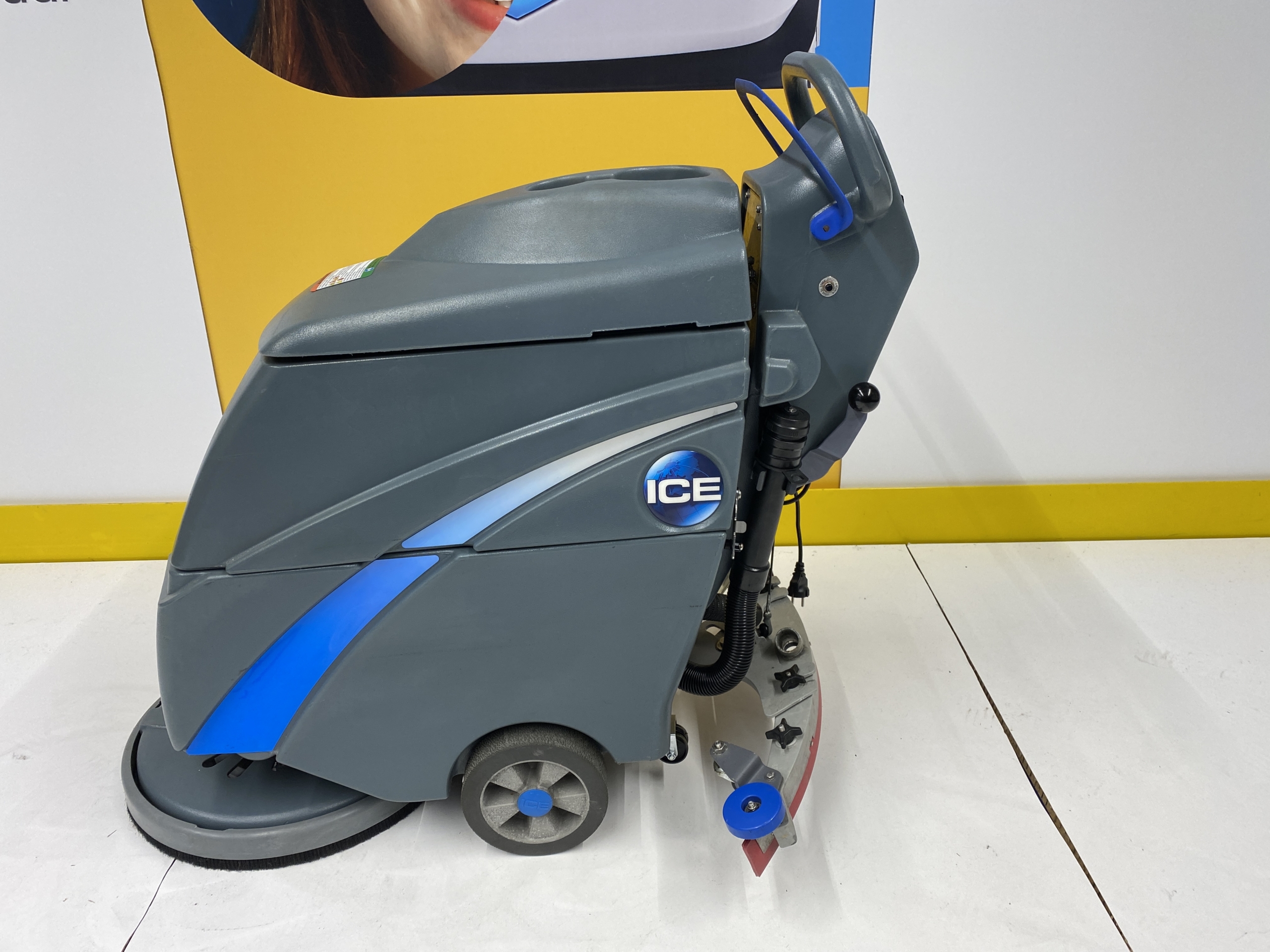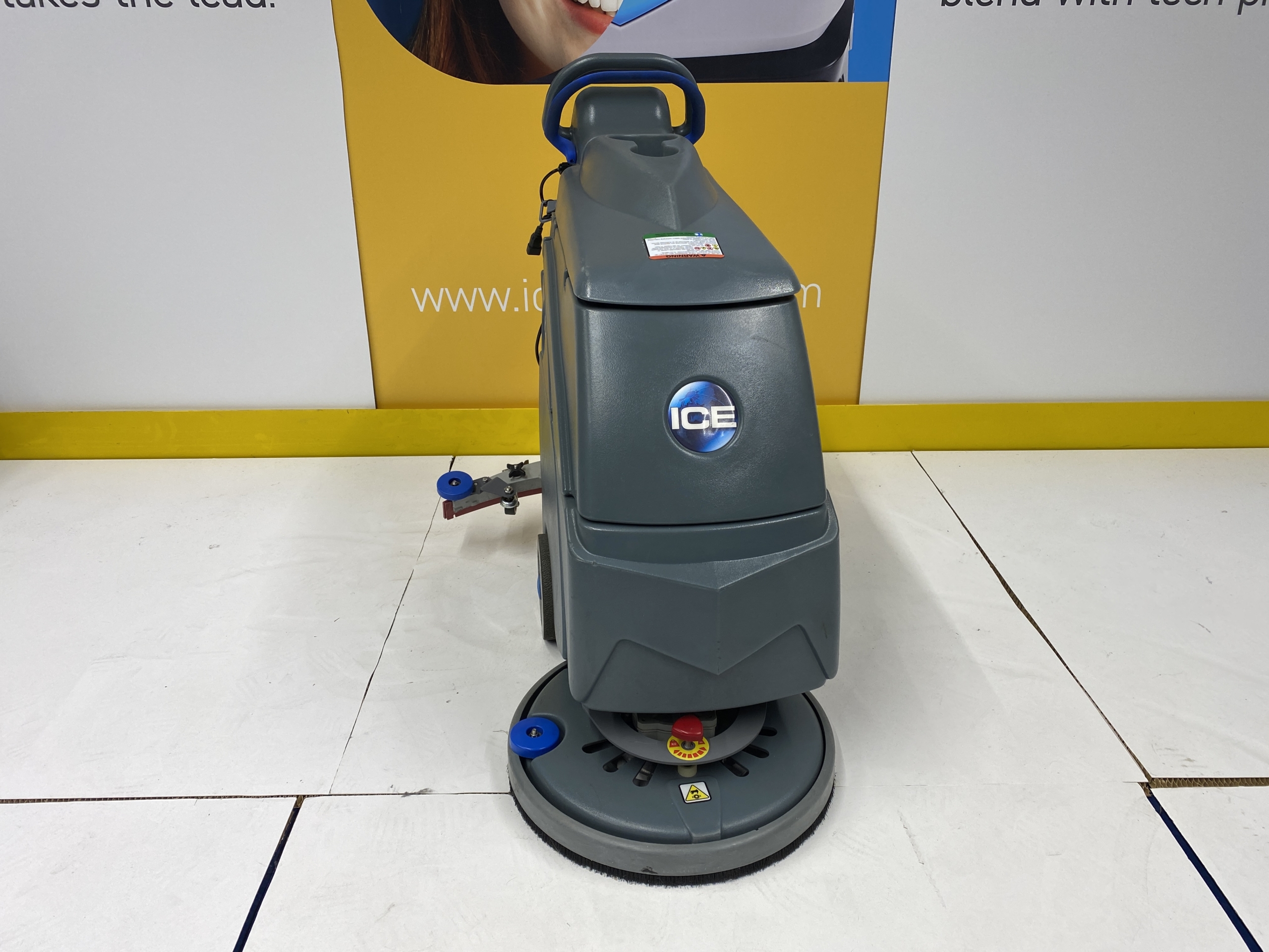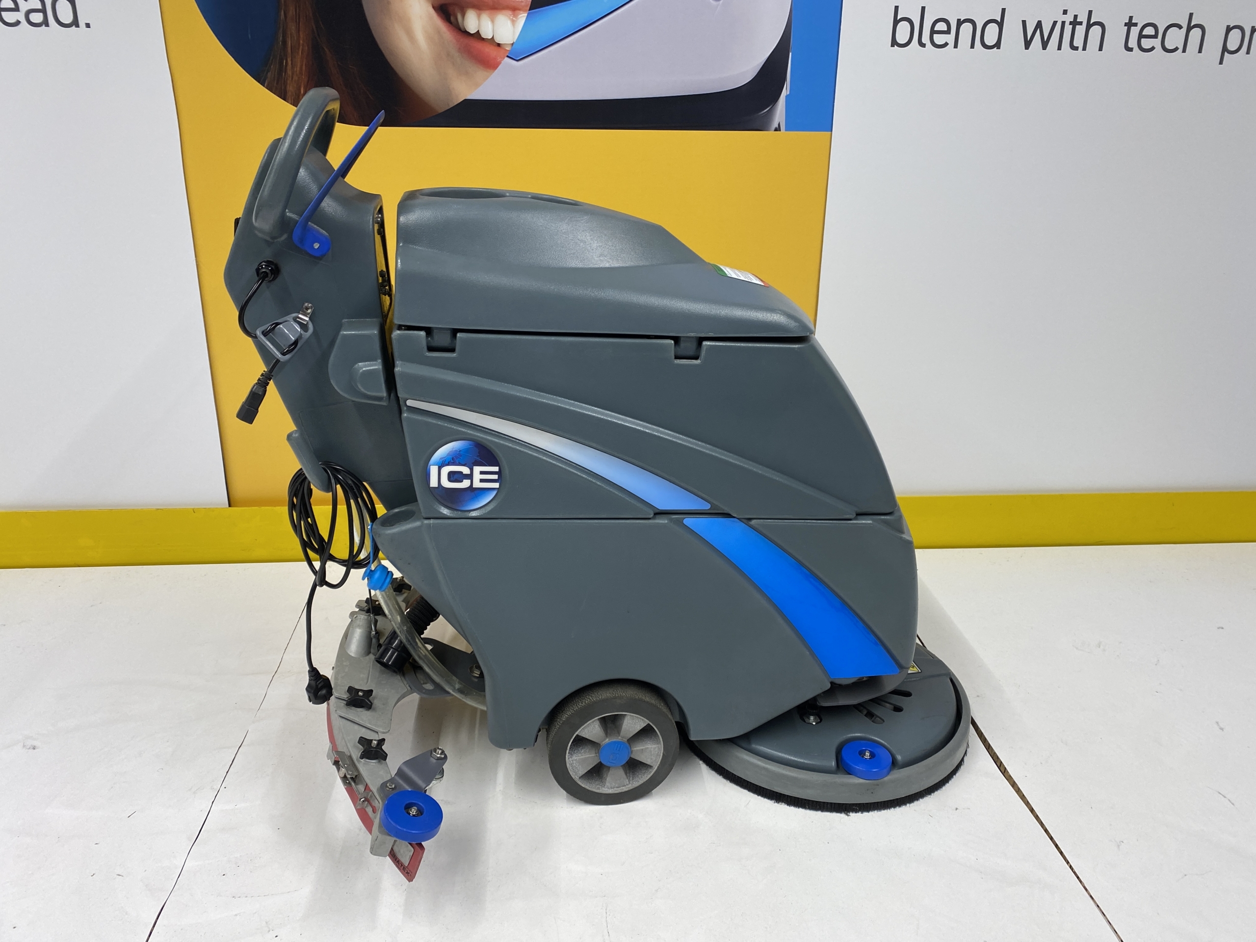 The i18B is a pad-assist, easy-to-operate battery auto scrubber. Because of its compact design, the scrubber is perfect for settings with tight spaces. The i18B is built with a gear-driven brush motor, the new noise-reducing design and the high-quality parts and components that make all ICE products so efficient.