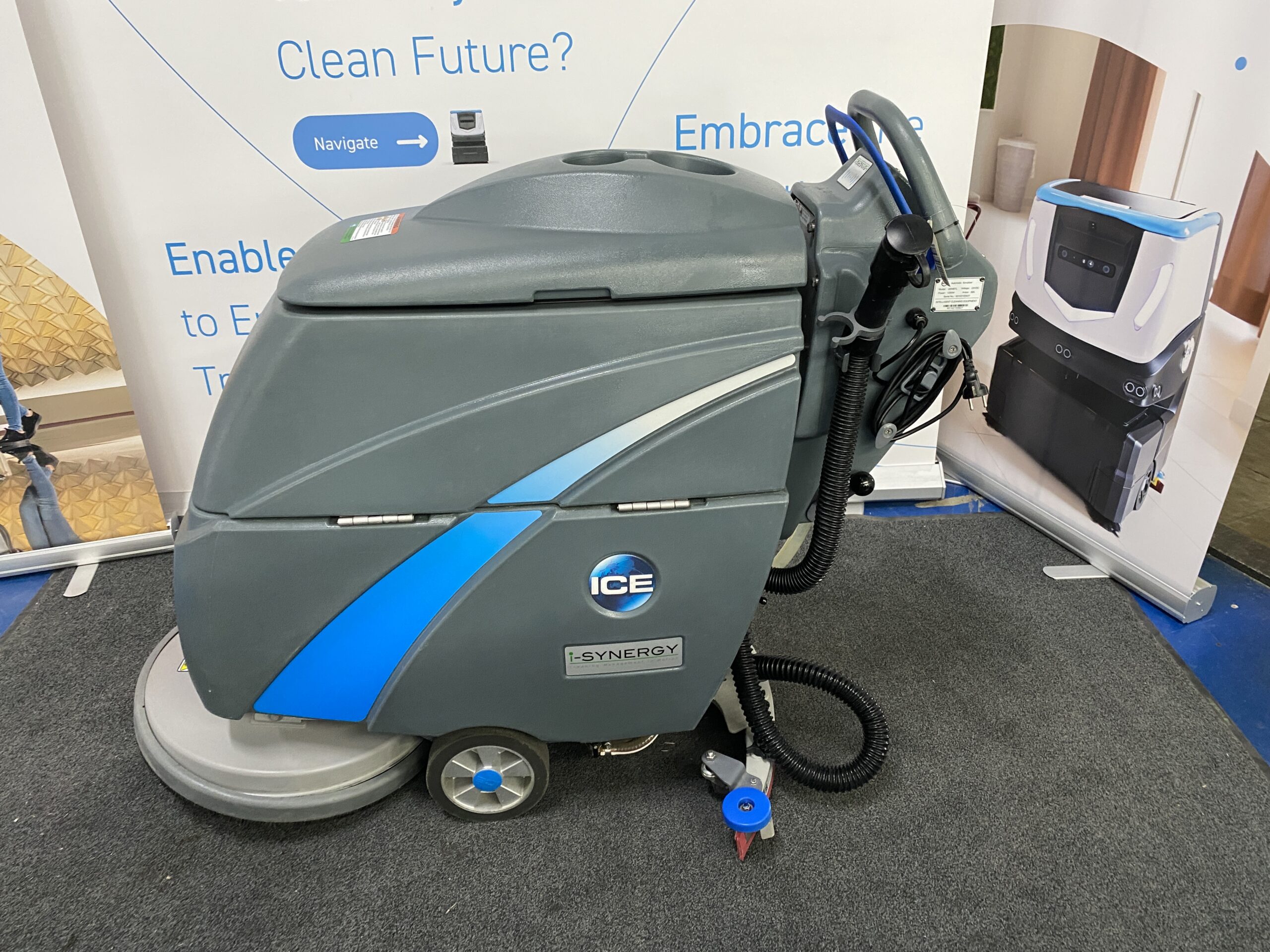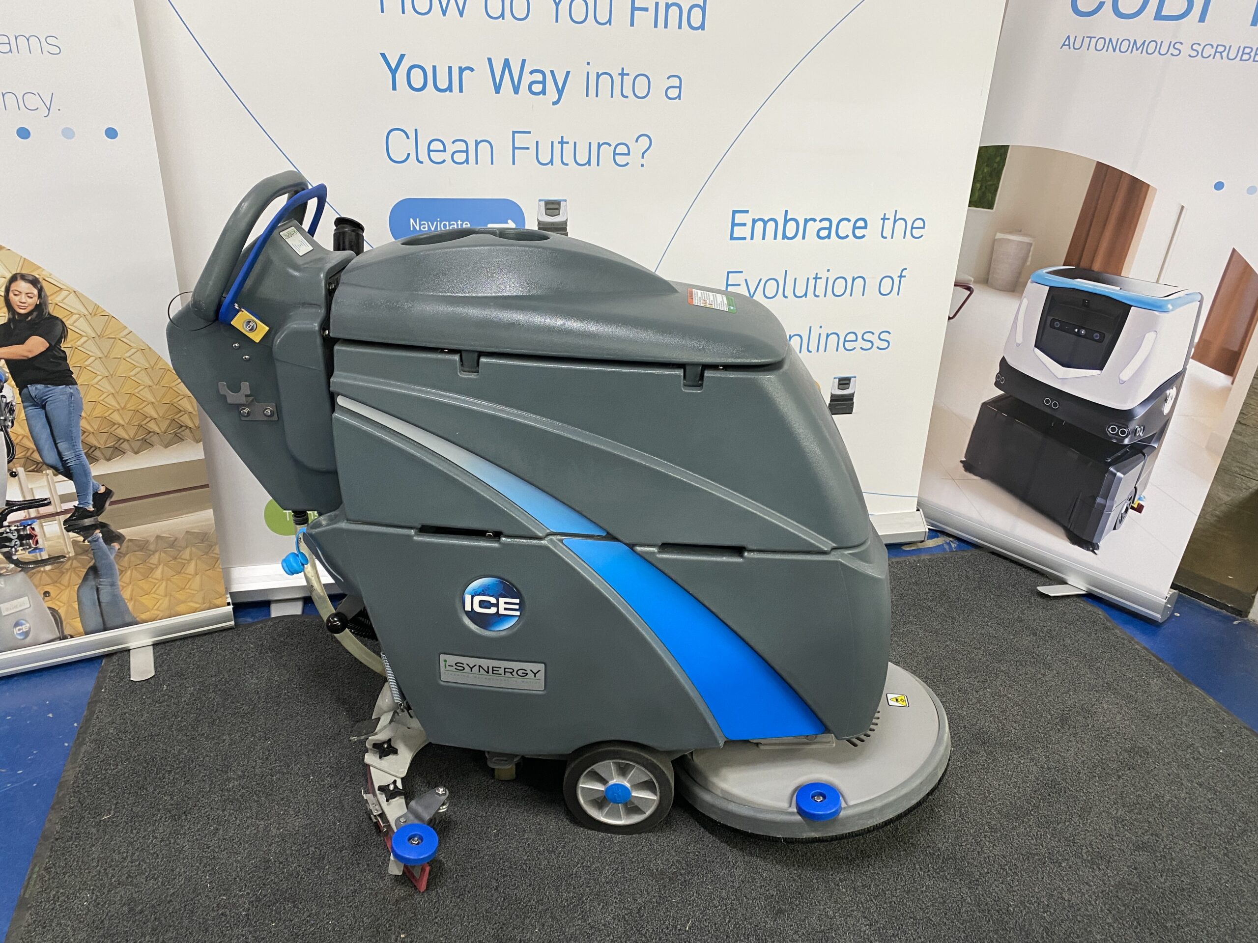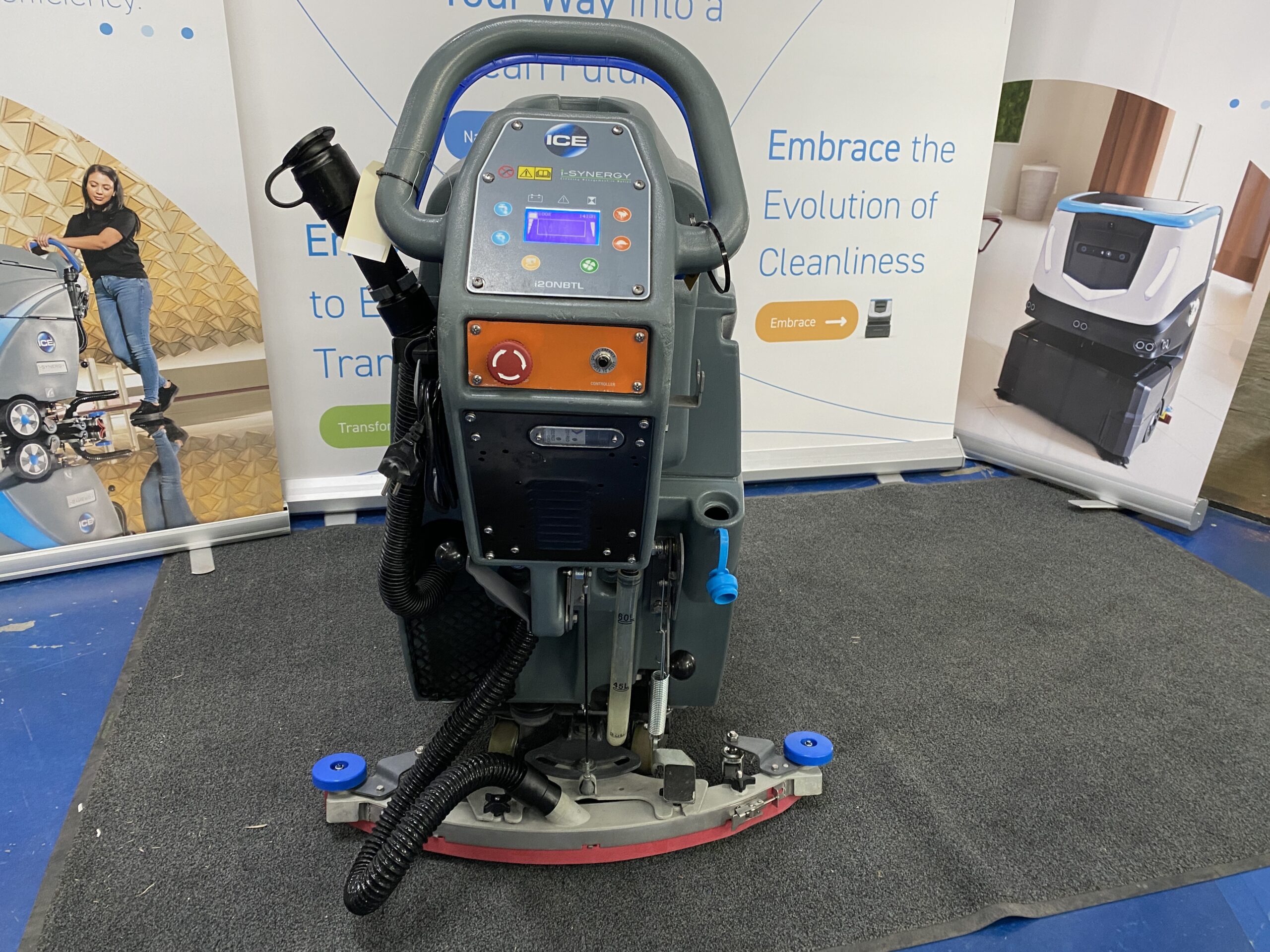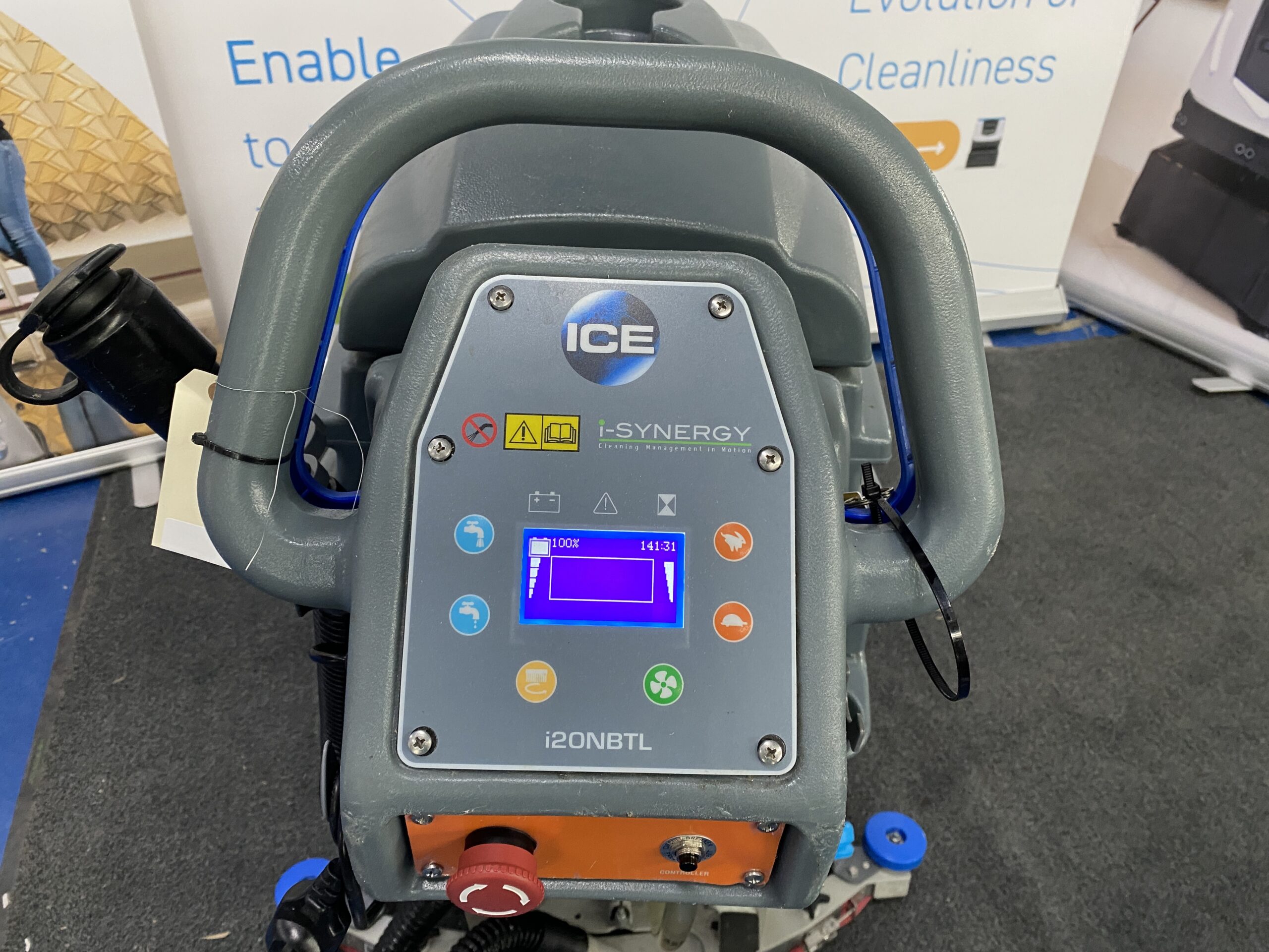 The i20NBTL i-Synergy is a brush-assist machine with an oversized tank capacity of 60 liters, a die-cast aluminium brush deck and curved squeegee for superior durability. The i20NBTL is easy to use and particularly maneuverable. It offers up to 45 kg of pad pressure for thorough scrubbing, and 3,5 hours of working time with the Li-ion battery.