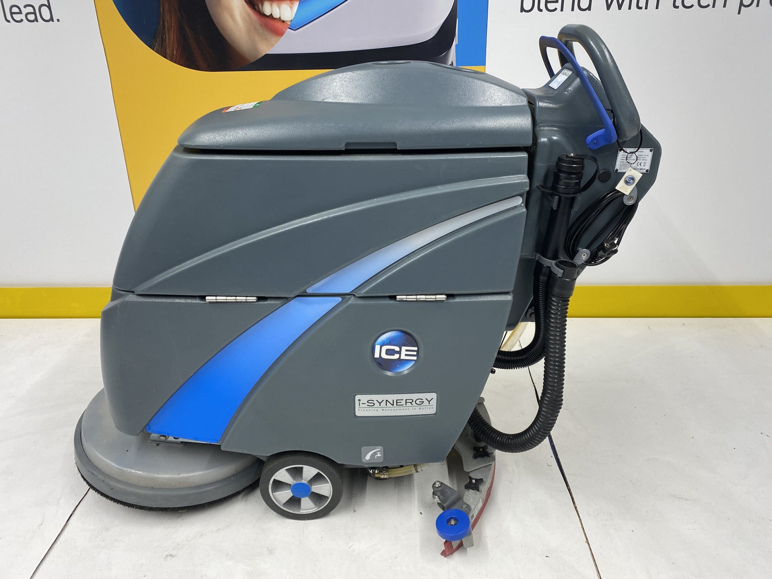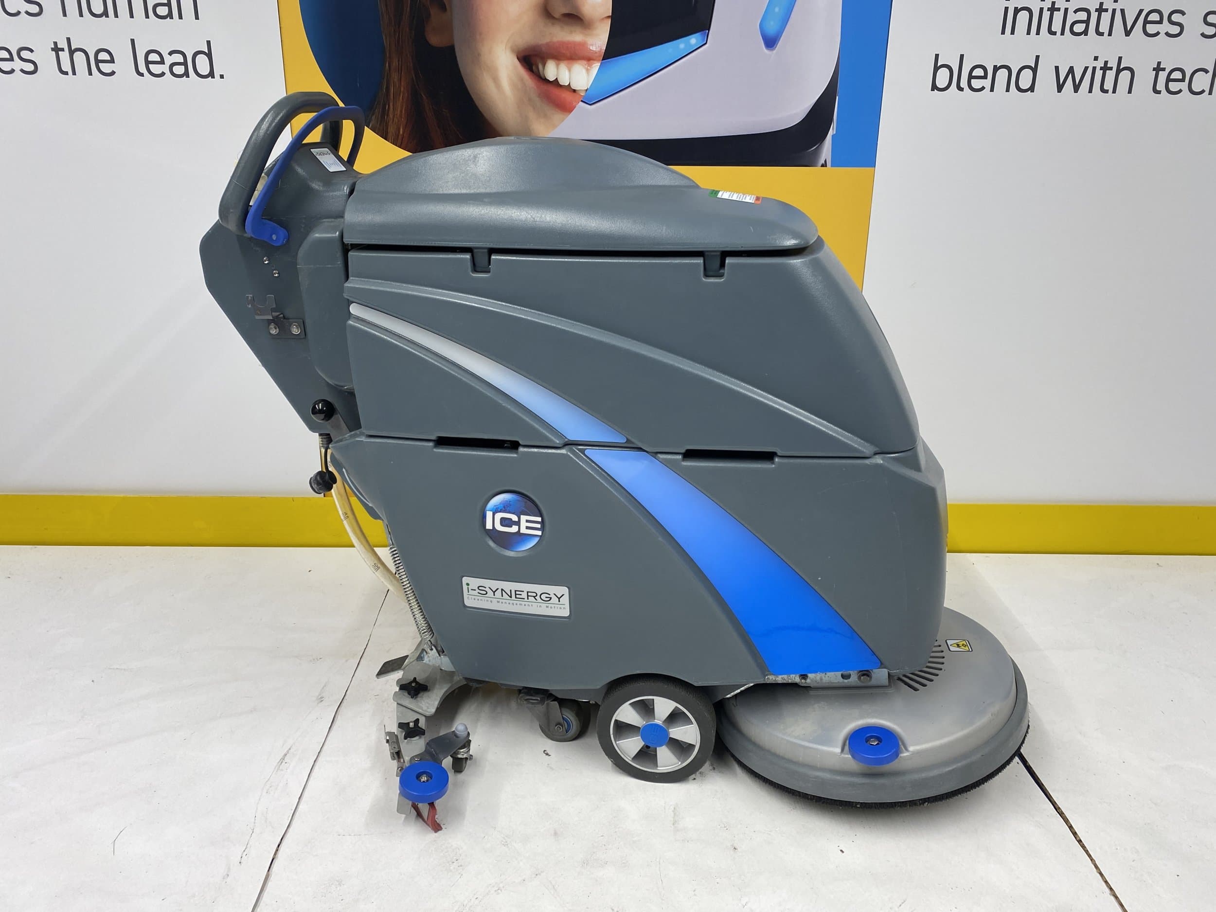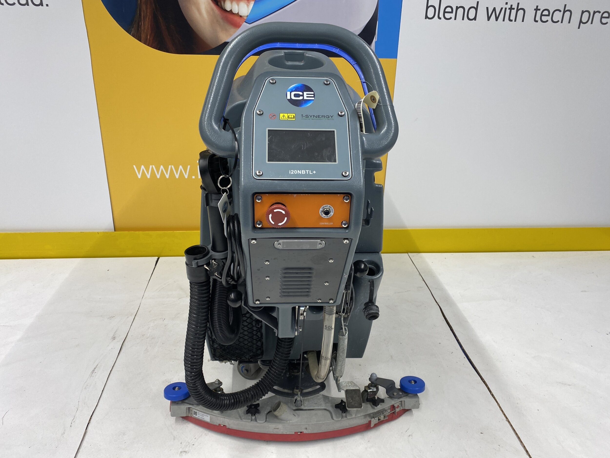 The i20NBTL+ i-Synergy is a brush-assist machine with an oversized tank capacity of 60 liters, a die-cast aluminium brush deck and curved squeegee for superior durability. The i20NBTL+ is easy to use and particularly maneuverable. It offers up to 45 kg of pad pressure for thorough scrubbing, and 3,5 hours of working time with the Li-ion battery.