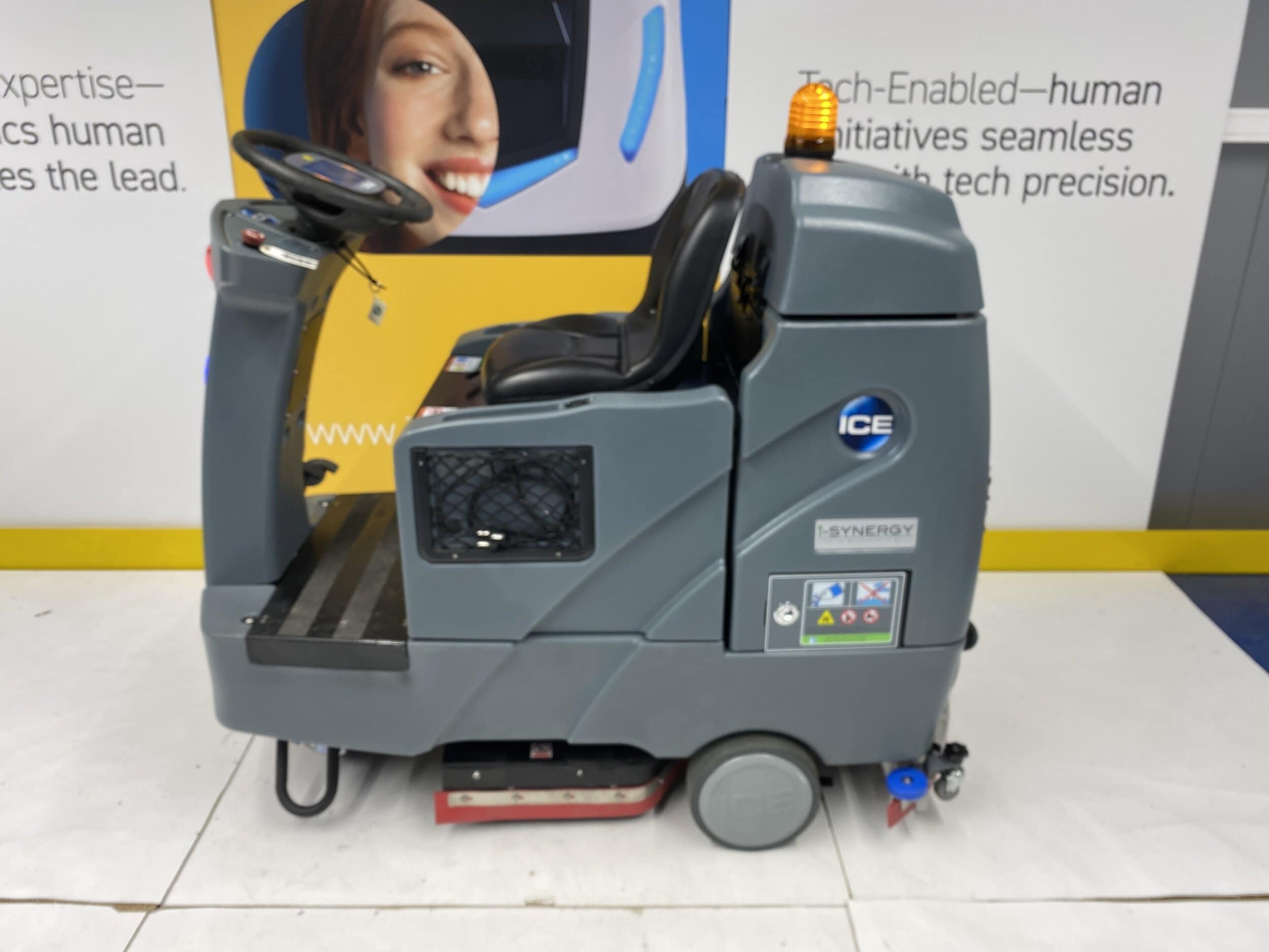 The RS26L+ i-Synergy rider auto scrubber is fully automated with a one-button programmable switch for training-free operation. A three-setting pad pressure of up to 75 kg allows for maximum cleaning efficiency and maneuverability. Real-time and daily reports from data such as location, operating- and charging time and cleaned surface. Its digitized (1% to 5%) solution mixing system makes solution composition change simple.